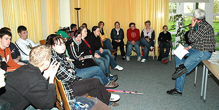 Andreas Lehnert erklärt den Zuschauern und der Moderatorin von Radio Hochstift das Projekt |